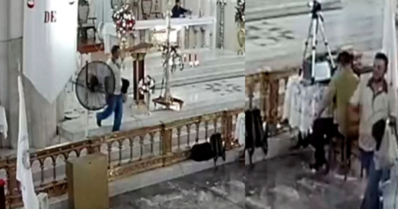 Todo quedó grabado: salieron caminando frente al altarLas cámaras muestran a los hombres salir de la sacristía y cruzar por el altar con aparente calma; no corren, no se esconden, simplemente avanz...